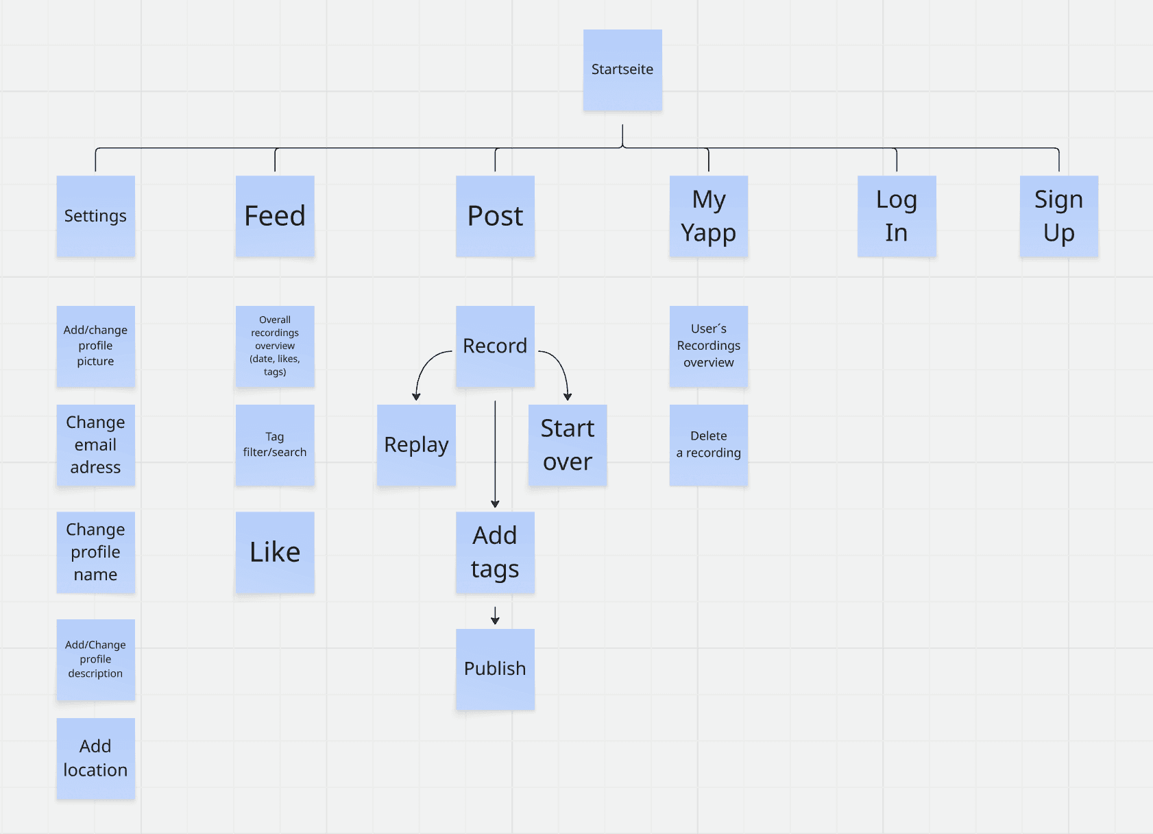 We started the interface design with a simple visual sitemap to understand the structure of the app. Using post-its, we wrote down all the key interactions to see what users need and how everything connects. This helped us keep the app intuitive and plan the layout more clearly.